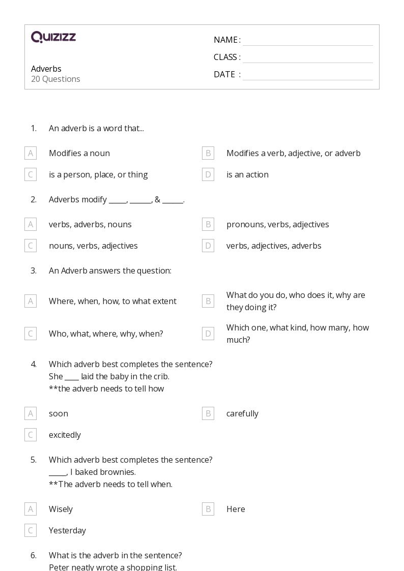 50+ Adverbs Worksheets For 7th Grade On Quizizz